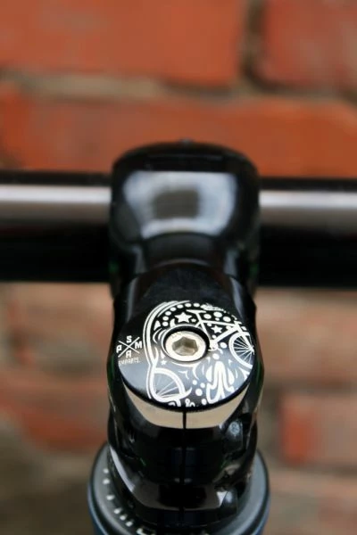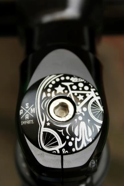 - Die SMParts Skull A-Head Kappe in Schwarz ist ein stilvolles und funktionales Zubehörteil für Gabeln, das jedem Fahrrad einen individuellen Look verleiht.